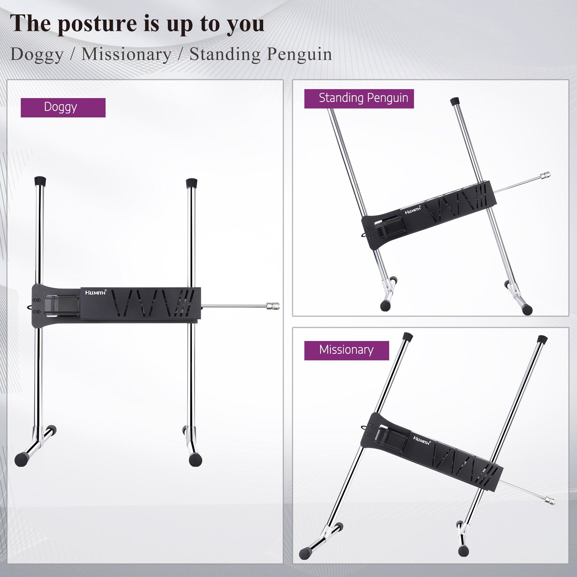 The fully dismountable 40cm frame of the HiSmith Servok is designed with your convenience in mind. It can easily expand to 80cm in height, giving you the freedom to adjust it to your desired level, even reaching bed level effortlessly. No more limitations or restrictions - just pure pleasure at your fingertips.