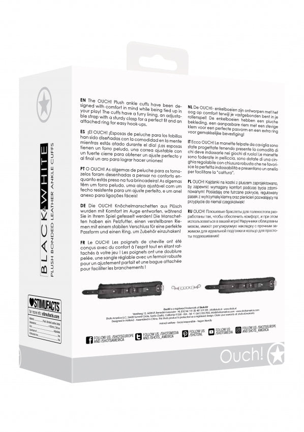 The OUCH! Plush ankle cuffs have been designed with comfort in mind while being tied up in your play! The cuffs have a furry lining, an adjustable strap with a sturdy clasp for a perfect fit and an attached ring for easy hook-ups