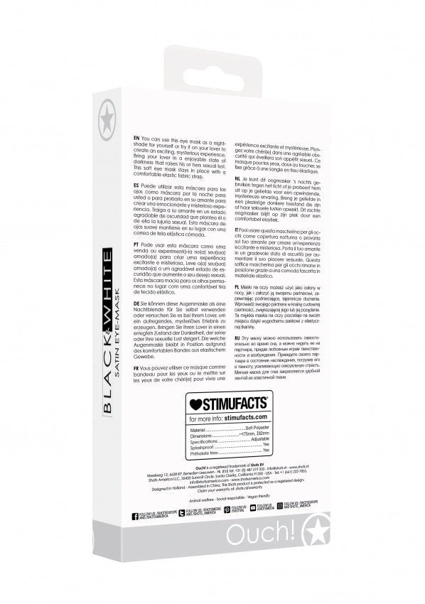 You can use this eye mask as a nightshade for yourself or try it on your lover to create an exciting, mysterious experience. Bring your lover in a enjoyable state of darkness that raises his or hers sexual lust. This soft eye mask stays in place with a comfortable elastic fabric strap.