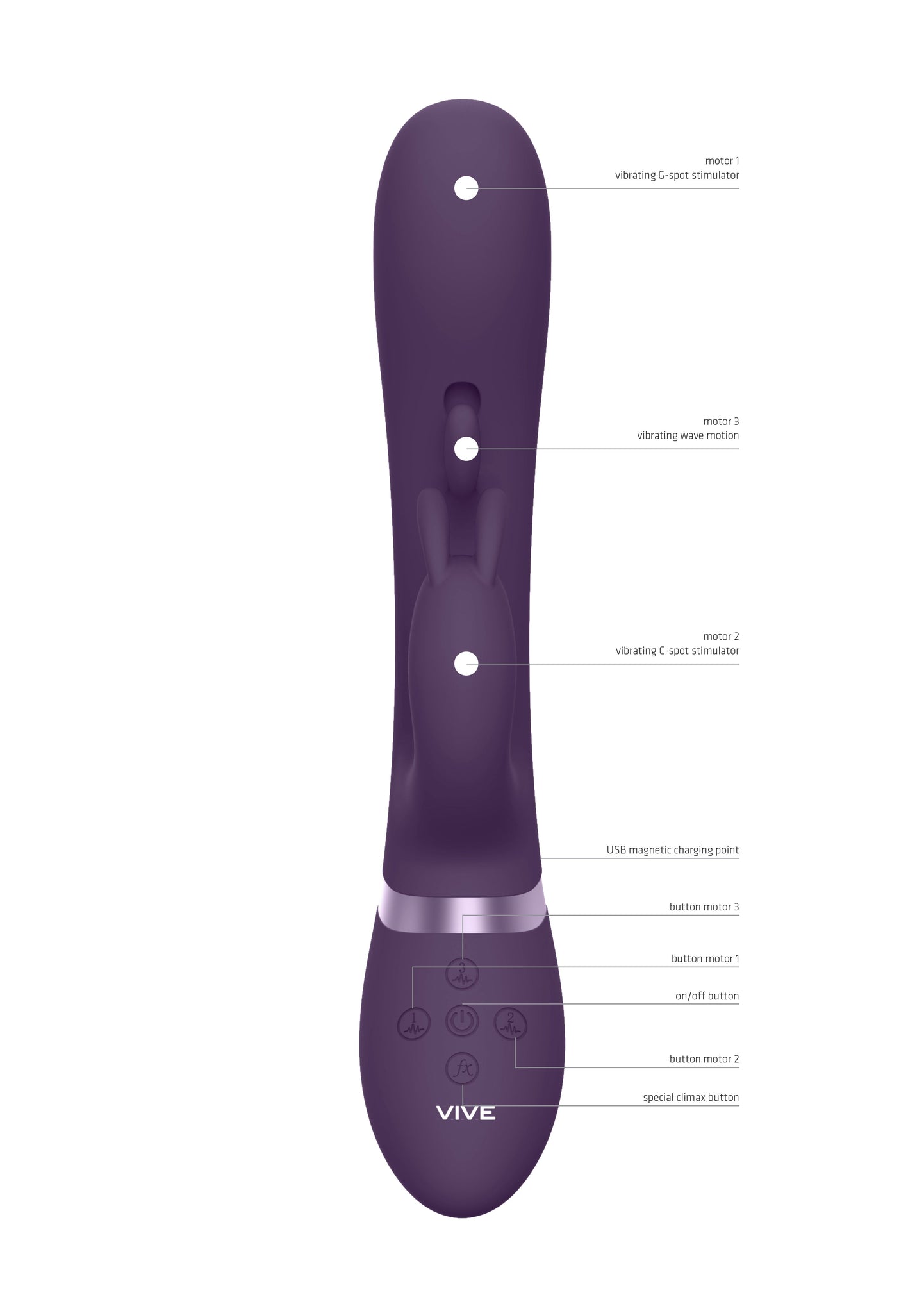 TAMA hits all the spots. With Three 10-function New Generation F1 Motors and its advanced technologies (All Three Motors can be Independently Controlled): One Innovative 10-function NG F1 Vibrating Motor for your G-Spot, One 10-function NG F1 Vibrating Motor for Clitoral stimulation and One 10-function NG F1 Motor on the vibrator shafts to create a wave motion, it's sure to bring you to maximum heights of pleasure in all your erogenous zones. This means you can setup your toy with up to 1,000 distinctive settings. Made from 100% silky smooth medical-grade silicone (hypoallergenic), it is totally waterproof (IPX7), and extremely quiet at under 60db. This means you can use it wherever your heart desires! It contains a USB magnetic rechargeable lithium-ion battery. When fully charged with its USB cable, it will provide 40 minutes of passionate playtime. Just plug, charge and play! When you're getting Close to climax, just one-touch of the special function climax button will immediately bring all the motors to full power/speed and, more importantly, bring you to an earth-shattering orgasm. All VIVE Vibrators have a full 1-year warranty to protect your investment.