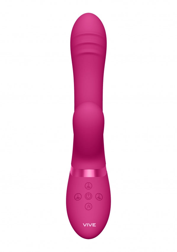 TANI It is one of the most Innovative and powerful vibrators on the market today thanks to its Three 10-funtion New Generation F1 motors and its advanced technologies (All Three Motors can be Independently Controlled). One 10-function NG F1 Vibrating Motor for your G-Spot, One Innovative 10-function NG F1 Finger Motion Motor that simulates a finger motion and One Innovative 10-function Pulse-Wave Motor for Clitoral stimulation, this vibrator has it all.With the unique 3 ridge vibrating design to stimulate your G-spot and pulse wave clitoral stimulation coupled with a finger motion motor gives you the possibility of 1,000 distinct setting, this vibe will leave you weak in the knees. Made from 100% silky smooth medical-grade silicone (hypoallergenic), it is totally waterproof (IPX7), and extremely quiet at under 60db. This means you can use it wherever your heart desires! It contains a USB magnetic rechargeable lithium-ion battery. When fully charged with its USB cable, it will provide 40 minutes of passionate playtime.Just plug, charge and play! When you're getting Close to climax, just one-touch of the special function climax button will immediately bring all the motors to full power/speed and, more importantly, bring you to an earth-shattering orgasm.